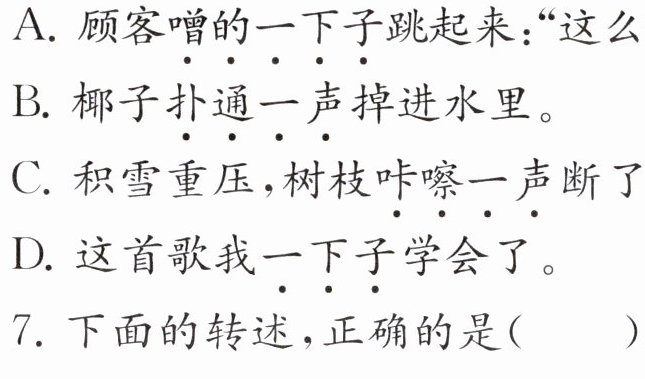 7. 下面的转述,正确的是(