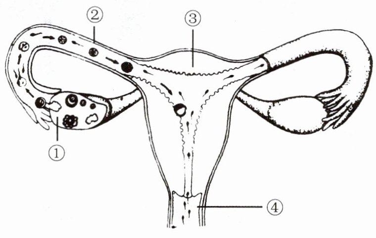 (2)和结合形成的过程叫作受精,此过程发生在②中。
