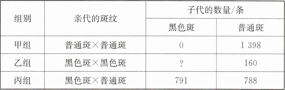(7)乙组子代中既出现了普通斑家蚕,也出现了黑色斑家蚕,从理论上推断乙组子代中的黑色斑家蚕应有条。
