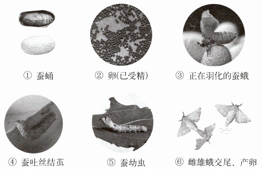 (1)按照家蚕的生长发育过程排序:(用箭头和图中序号排序)。