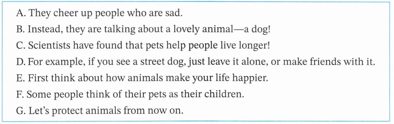 If others around you do bad things to animals, try to speak up. As humans, we must protect animals who can't speak for themselves.A. They cheer up people who are sad.