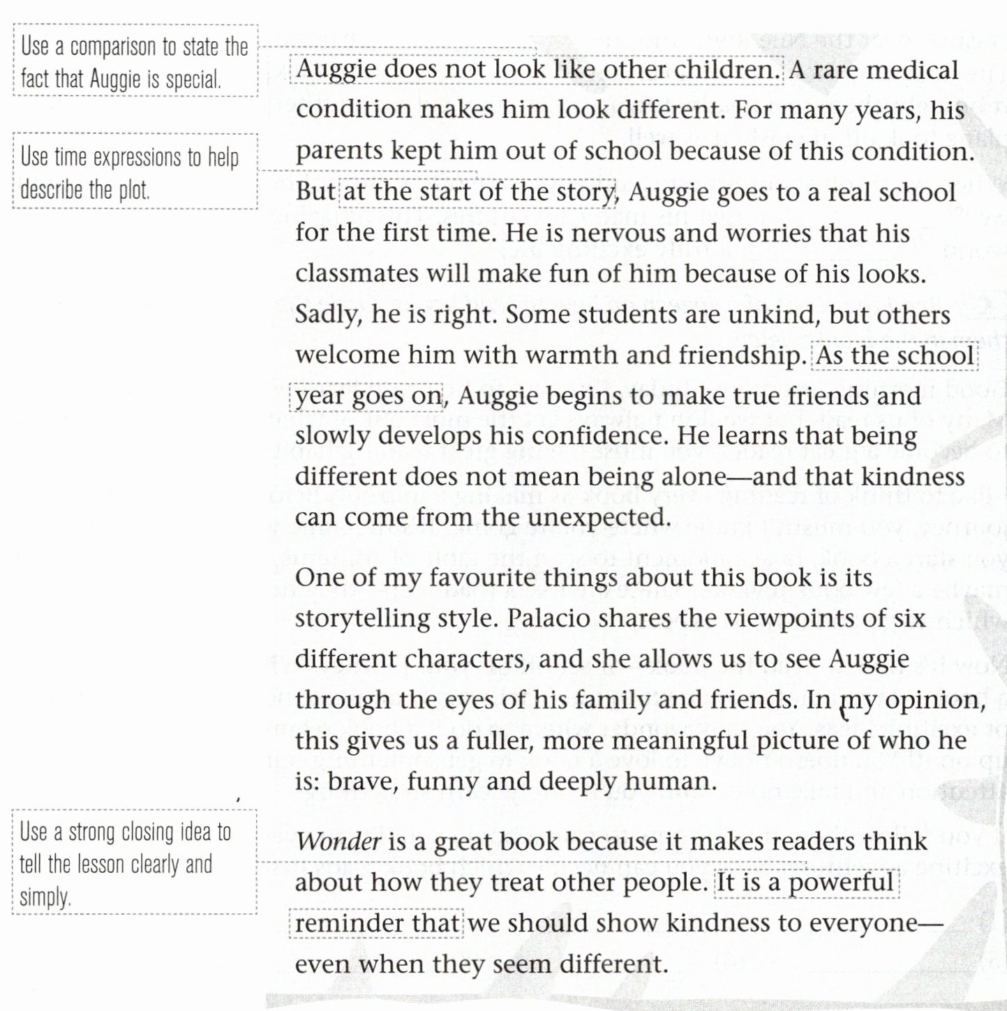 A Rob is writing a book review of *Wonder*. Read his book review and learn how to write one.