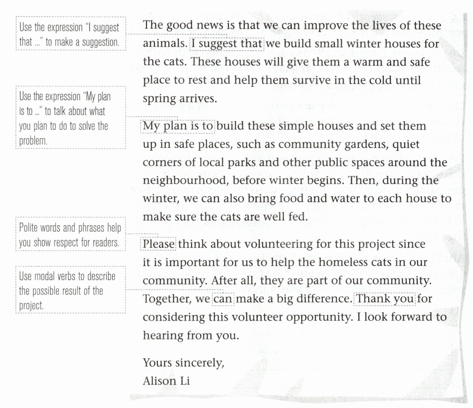 A Alison is writing a letter to encourage people to take part in a volunteer effort. Read her letter and learn how to write one.