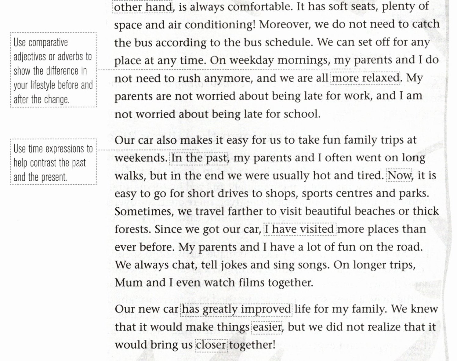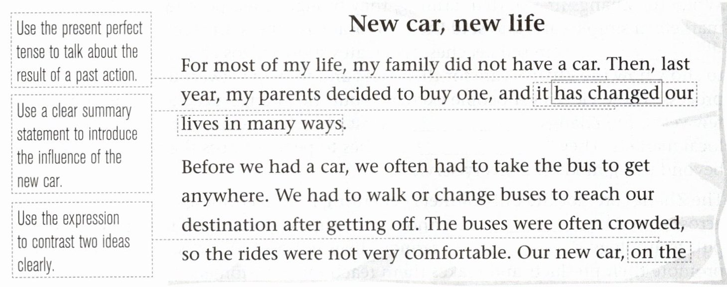 A David is writing an article about his life after getting a family car. Read his article and learn how to write about a change in your home life.