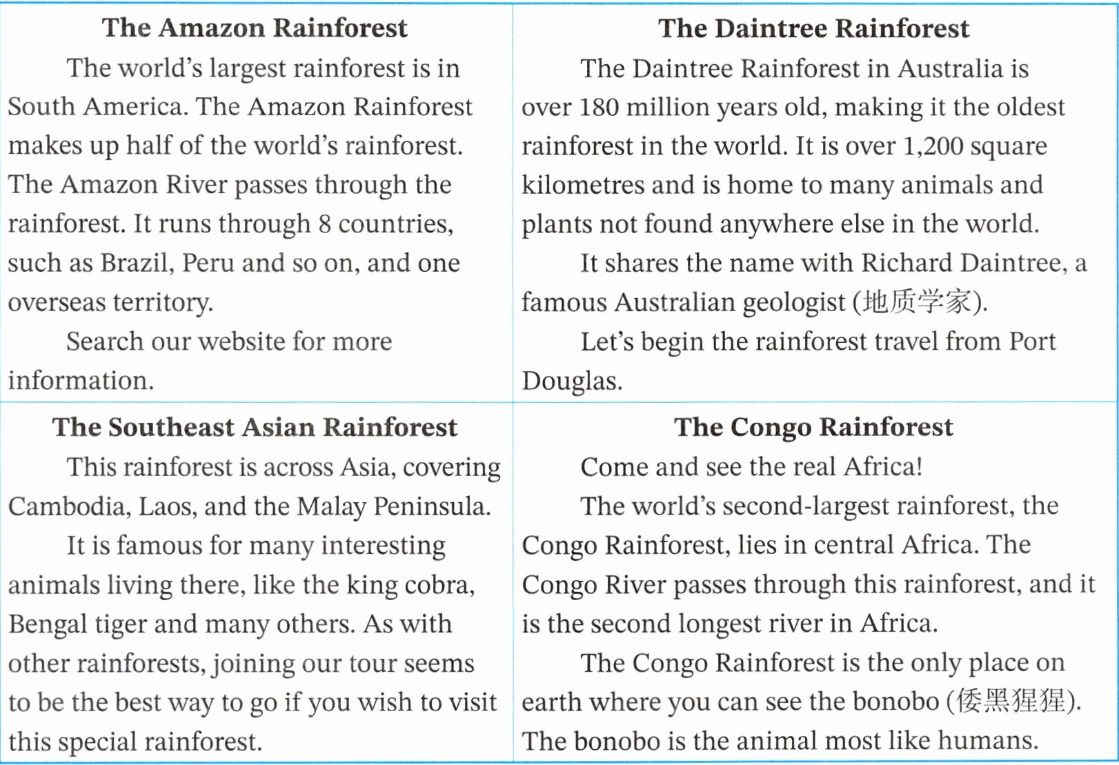 () 2. Which rainforest is in Africa?