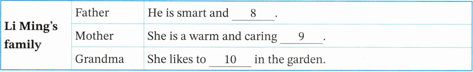 8. 房子旁边通常有院子用来种植花草树木,结合首字母y,应填yard。