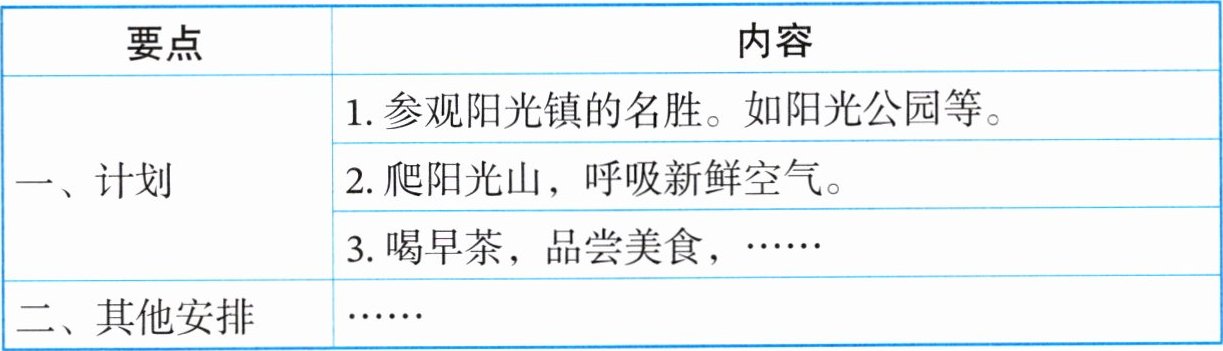 本题为应用文写作,需以Lily的身份给表姐June写邮件介绍阳光镇暑期旅游计划。写作时要用一般将来时,涵盖参观名胜、爬山、品尝美食等要点,补充合理的其他安排,语言符合七年级下册词汇与句式,控制词数在80左右,注意邮件语气亲切自然。