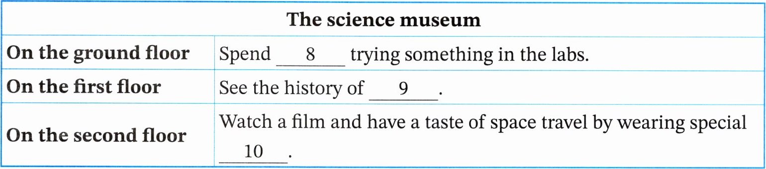 听一篇短文,回答第 8—10 小题,完成信息记录表。