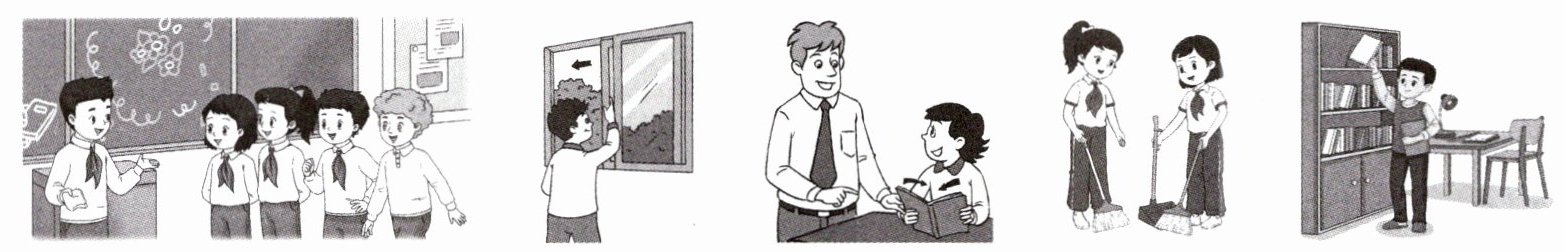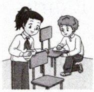 本题以图片+句子的形式,考查学生对教室相关词汇、日常清洁类动词短语的掌握,注重语境与词汇的结合,帮助学生巩固日常英语表达。