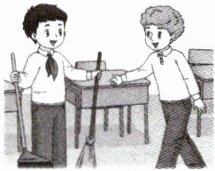 5. 图片提示动作是扫地,故依次填sweep, floor。