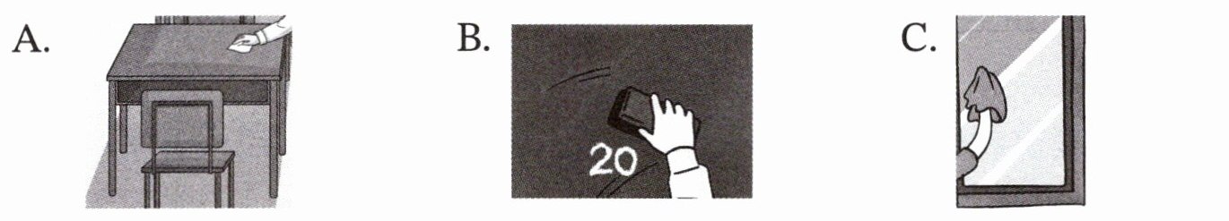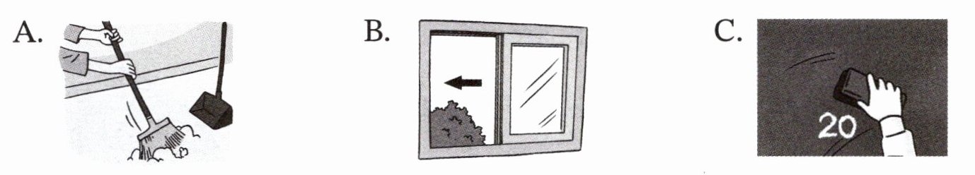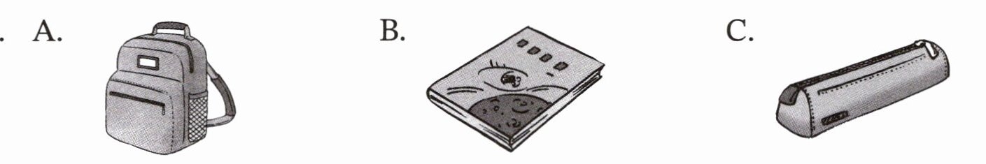 本题为听力类图片匹配题,需依据所听录音内容,从每小题对应的A、B、C三个选项图片中,选出与录音内容相符的图片。