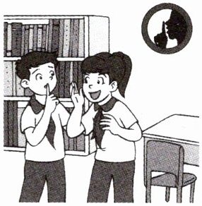 本题借助图片考查动词辨析及公共场所礼仪,需结合图片内容和语境判断,难度较低,帮助学生掌握基础动词词义与公共场合行为规范。