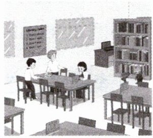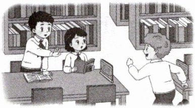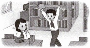 1. 根据图片的图书馆场景及语境,第一空填rules(规则),第二空填library(图书馆),句子意为“请遵守图书馆里的规则”。