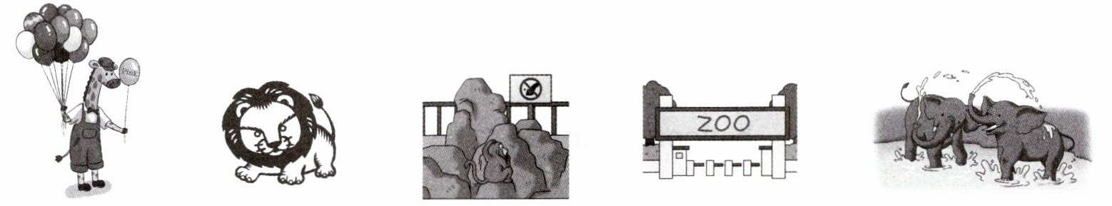 本题考查学生的听力理解能力和图文匹配能力,要求学生快速将听力内容与图片关联,同时巩固对动物园相关事物的认知。