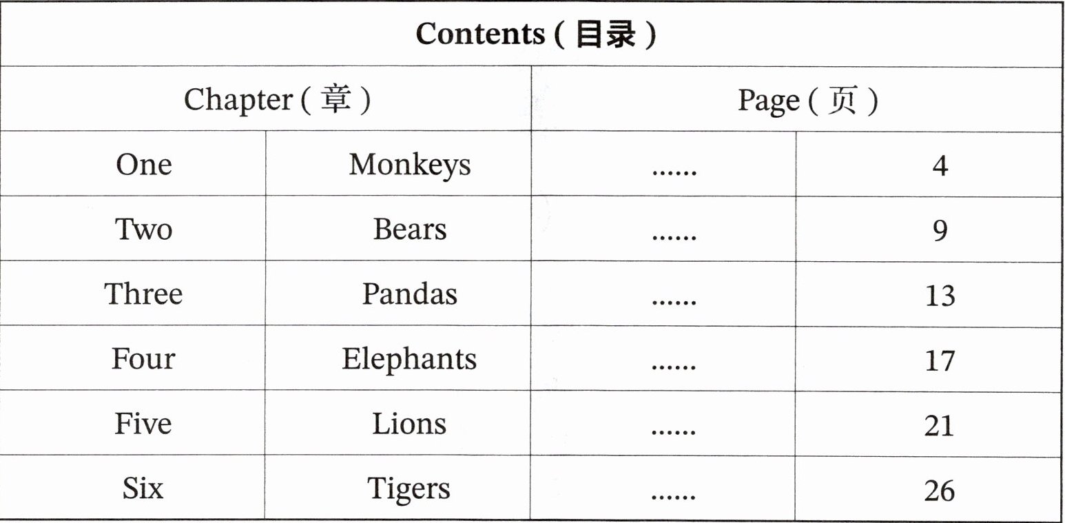 ()4. Liu Tao likes pandas. He can read Chapter 2.