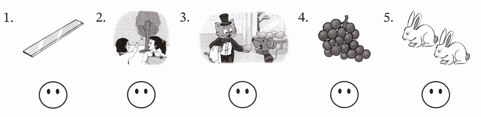 1. ☹ 2. ☺ 3. ☺ 4. ☹ 5. ☹