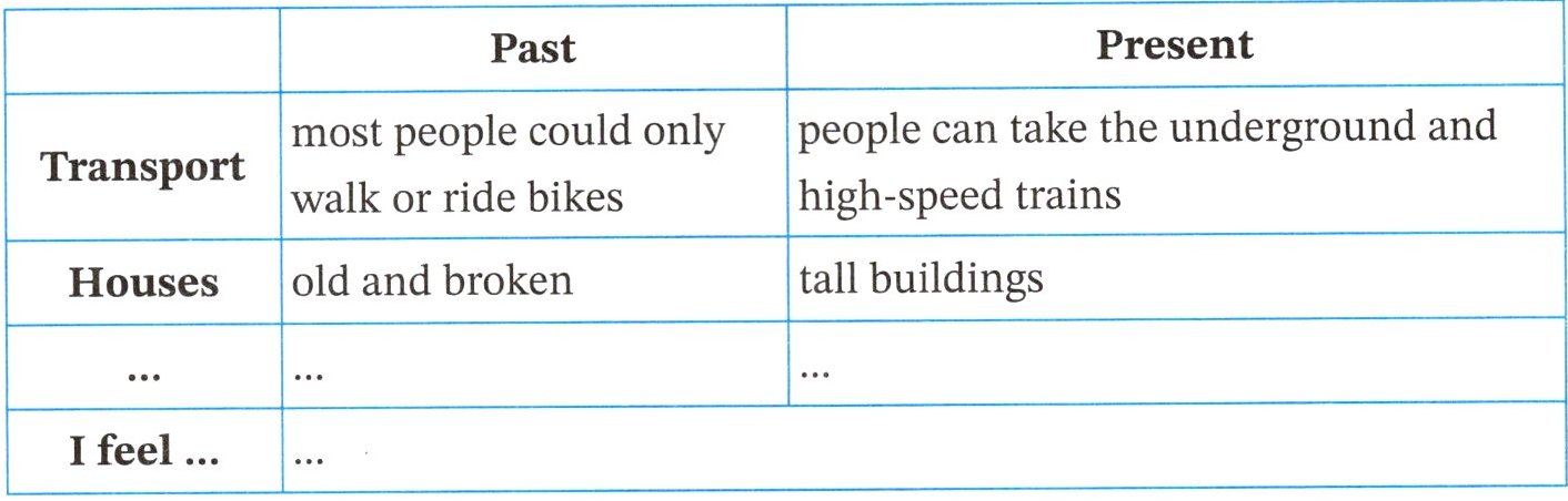 Now, my hometown has become a modern town. There are many types of transport. People can take the underground and high-speed trains to get around. There are many tall buildings here and people live happily in new flats. Facilities like supermarkets, hospitals and schools make our life more convenient.