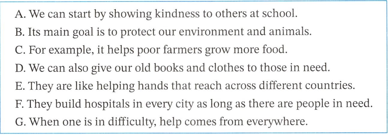 50 Another easy step is to learn more about these charities and tell our friends and family. So there will be more helping hands!A. We can start by showing kindness to others at school.