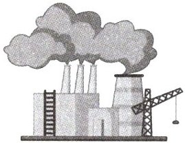 B.It shows smoke from factories.
