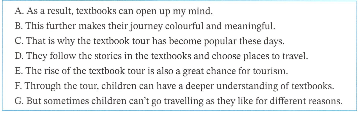 Besides, the textbook tour further increases children's pride in their motherland. It also helps them learn about the excellent traditional culture of China.E