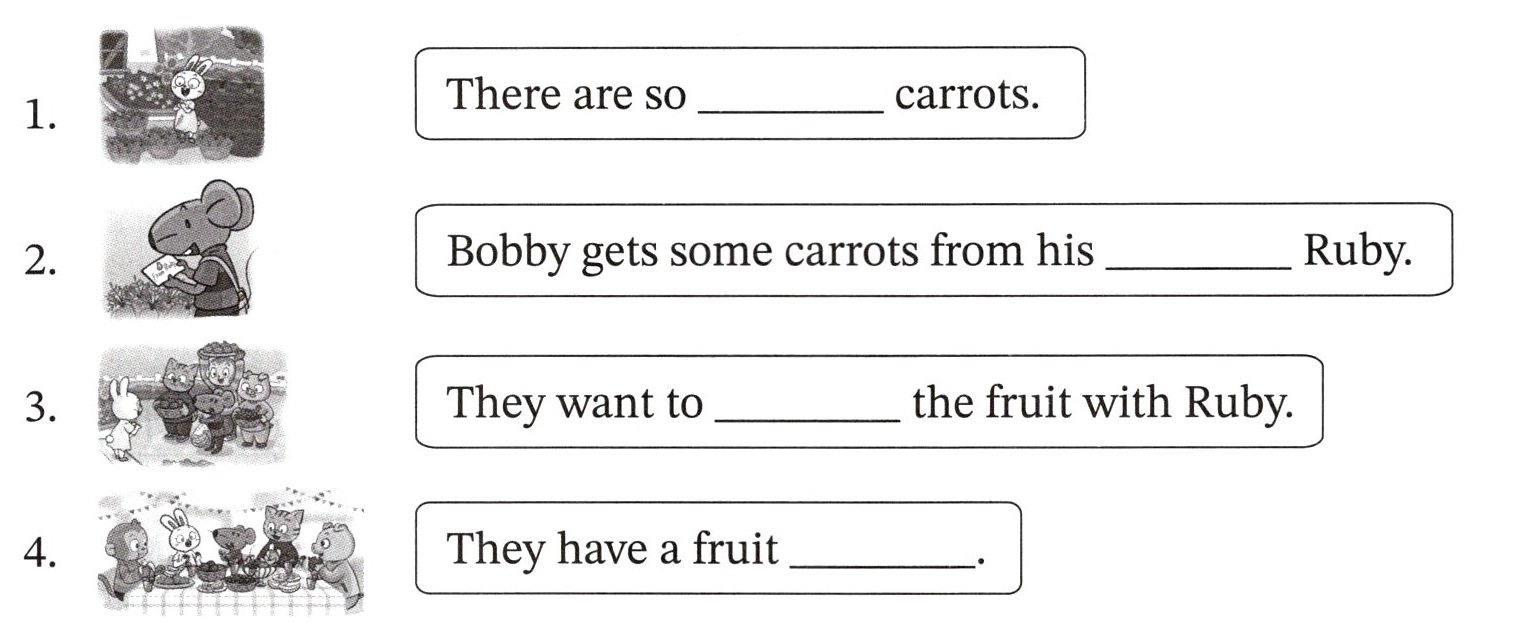 二、根据 Cartoon time 内容,选择合适的单词补全句子。