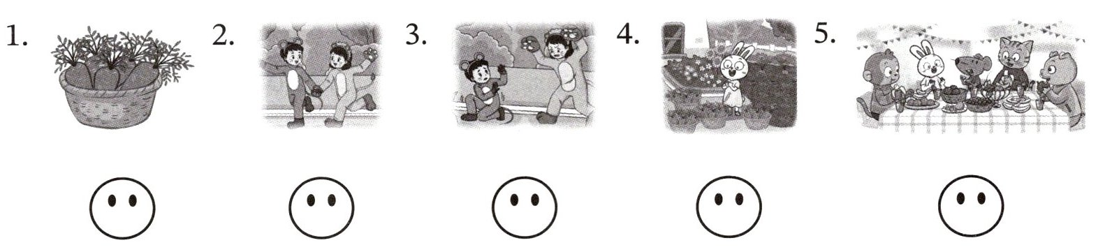 一、听录音,判断下列图片与所听内容是否相符,相符的画☺,不相符的画☹。(听两遍)