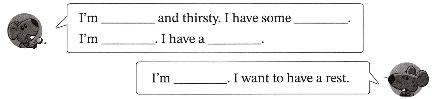 答案:Tom: hot, water, hungry, cake