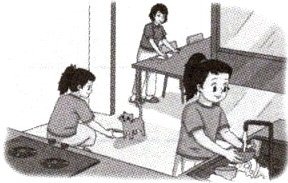 . Mum is cooking lunch and Dad is washing the clothes. We want to help them
