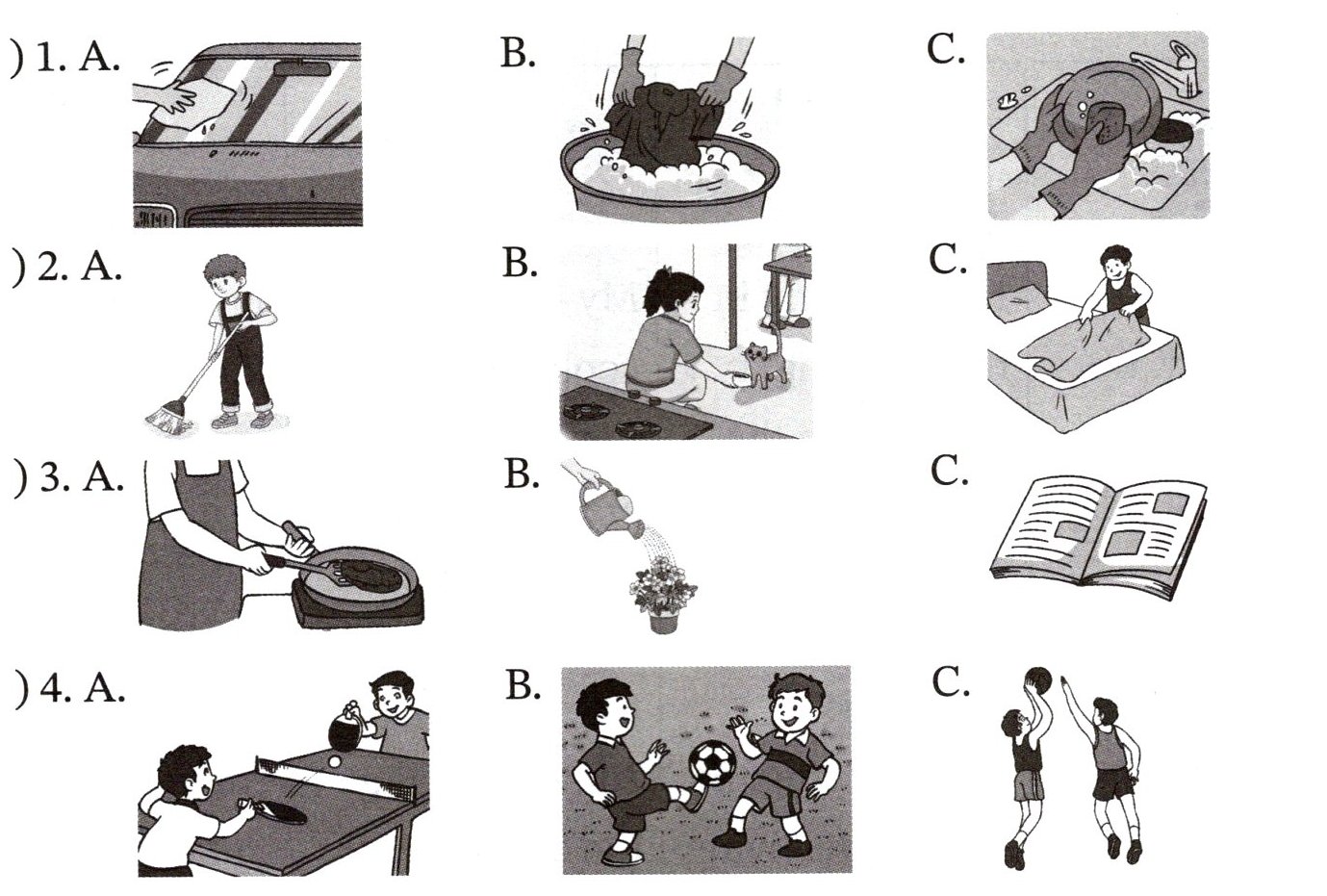 ) 1. A. I can make the bed.B. I'm washing the dishes.