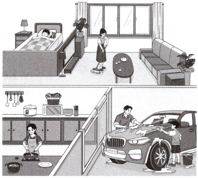 his mother doing?B: She's cooking.