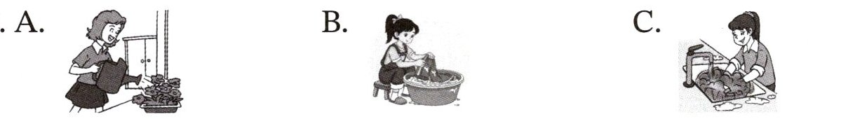 .A. washing the clothes