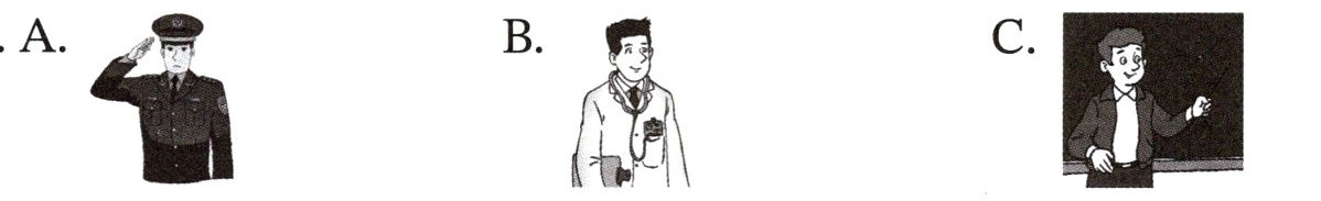 ) 2. A. He's a worker. B. She's a teacher. C. He's a cook.(