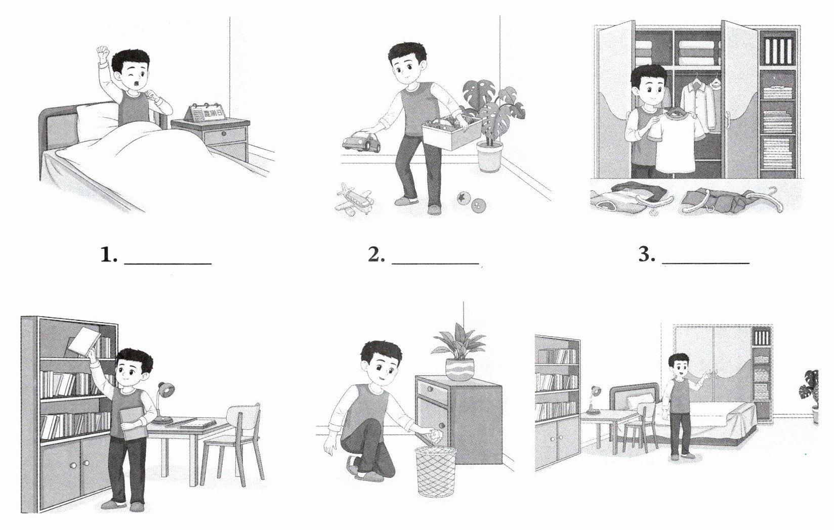 6. 图6是房间变得干净整洁的场景,对应选项E的内容。