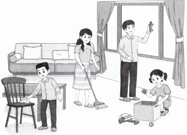 示例: This is our home. It’s small but nice. We sweep the floor. We clean the window. We clean the table and chair. We put away the toys. How tidy! We can keep our home clean.