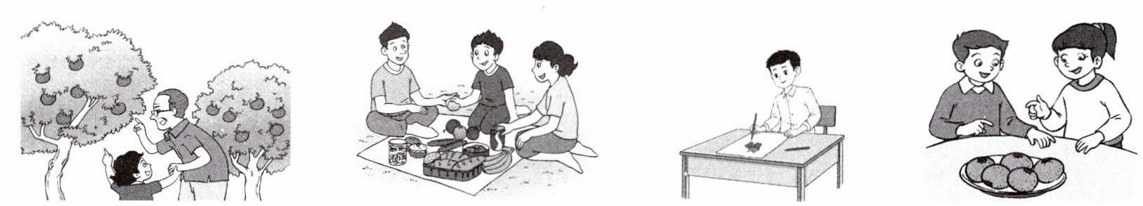 A. —There are five oranges. Let's share them. —OK. They look tasty.