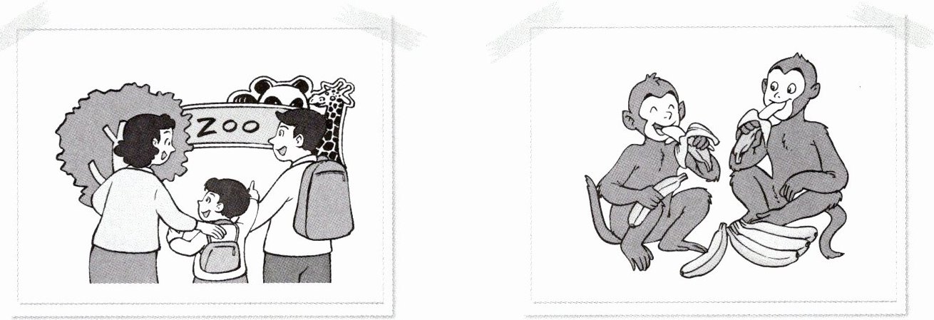 . We eat some pies and bananas. The monkeys like bananas too. But we can't 6. feed