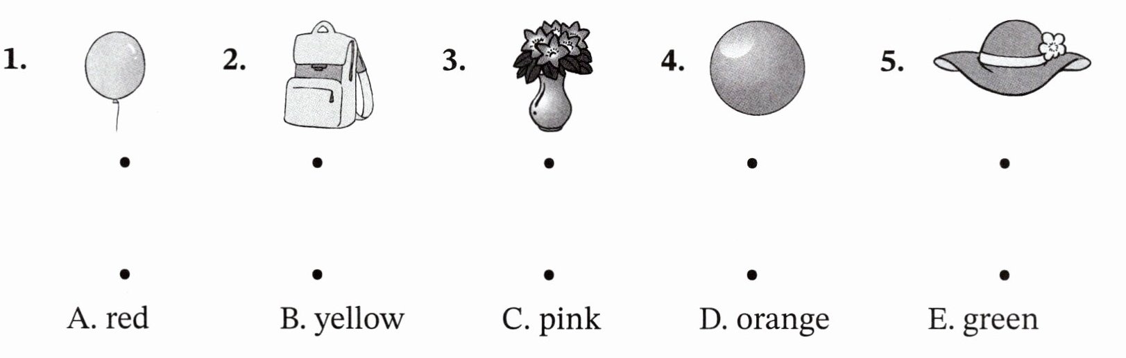 答案:1. green, red 2. yellow, green 3. black, white 4. purple, red