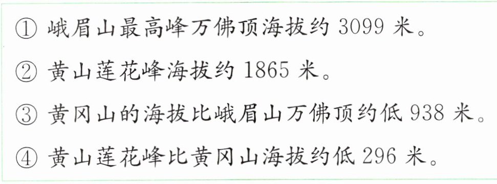 ③ 黄冈山的海拔比峨眉山万佛顶约低938米。
