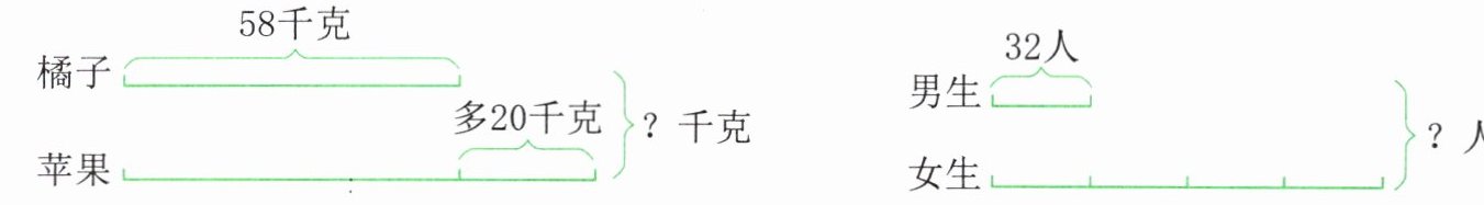 分量:橘子的重量(58千克),苹果的重量(比橘子多20千克)