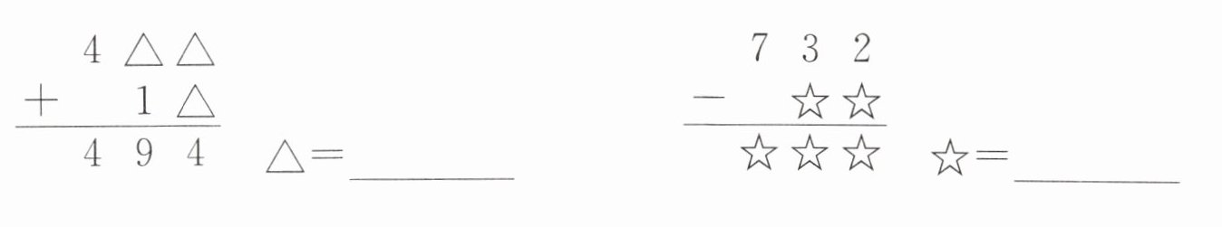 本题需结合整数加减法竖式的数位特征、进退位规律推理图形代表的数字,注意相同图形代表相同数字,需验证结果合理性。