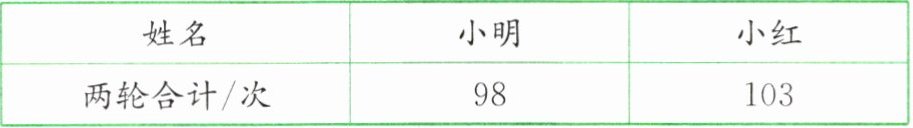 8. 小明和小红进行1分钟跳绳比赛,分两轮进行,两人跳绳的总次数如下表。第一轮两人跳的次数相同,小明第二轮跳了47次,小红第二轮跳了(