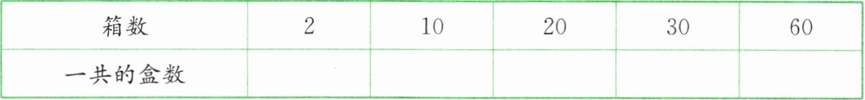 所以表格从左到右依次填$24$、$120$、$240$、$360$、$720$;发现:当每箱盒数一定时,总盒数和箱数成正比例关系。