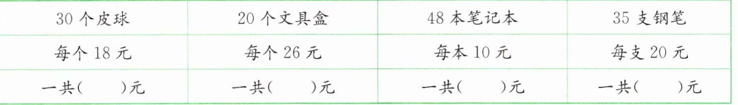 钢笔单价$20$元,数量$35$支,根据公式“总价 = 单价×数量”,$20×35=700$元。
