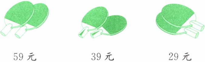 5. 吴老师买18副同样的乒乓球拍,付给营业员800元。他买的是下面哪种乒乓球拍?吴老师买乒乓球拍一共要花多少元,应找回多少元?