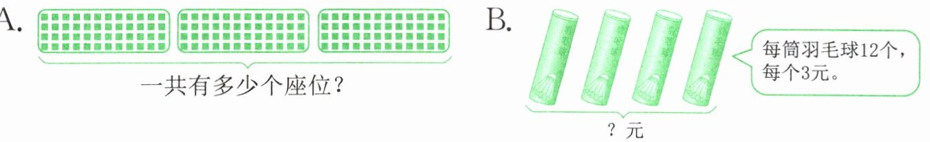 B选项:先求4筒羽毛球总个数,再求总价钱,列式为$12×4×3$;