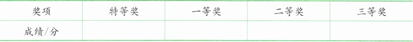 答案:特等奖:95~100 一等奖:90~94 二等奖:85~89 三等奖:低于85