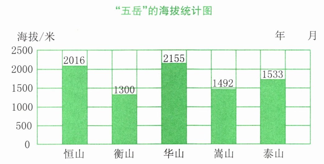 1. “五岳”是中华传统文化中五大名山的总称,分别为东岳泰山、西岳华山、北岳恒山、南岳衡山、中岳嵩山。如图是我国“五岳”海拔统计图。