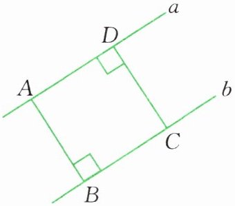 1. 直线$a$和直线$b$是一组平行线,线段$AB$垂直于直线$b$,线段$CD$垂直于直线$a$。下列说法中,正确的画“√”,错误的画“×”。