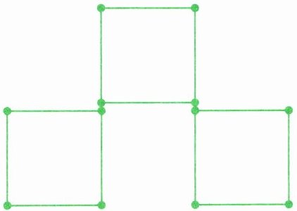 左图中,用$12$根火柴棒可以摆出$3$个正方形。小丽用$10$根火柴棒也正好摆了$3$个正方形,你能画出她摆的图形吗?试一试。