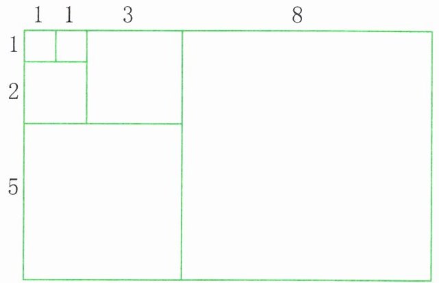 数正方形:按边长大小分类,边长为1的有2个,边长为2的有1个,边长为3的有1个,边长为5的有1个,边长为8的有1个,共2+1+1+1+1=6个。数长方形:先数由2个正方形组成的3个,3个正方形组成的2个,4个正方形组成的2个,5个正方形组成的1个,6个正方形组成的1个,共3+2+2+1+1=9个。
